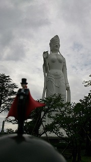 あ、なんか車からでかい観音様が見えたので見に行こうってことでそこへ向かったんだ。