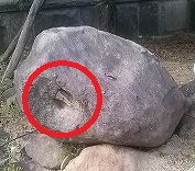 ここにカニのハサミの跡があるんですぜ!